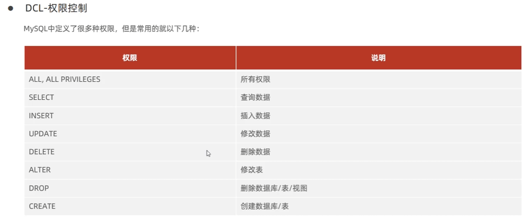 REVOKE 权限列表 ON 数据库名.表名 FROM '用户名' @ '主机名'; # 多个权限之间使用,分隔